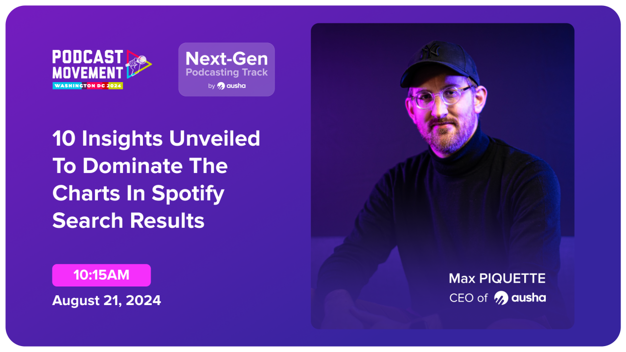 Unlock unparalleled growth for your podcast with Ausha's exclusive study of 8 million episodes. Our groundbreaking PSO Control Panel is designed to dramatically enhance your podcast's visibility in Spotify's search results. Join Maxime, CEO of Ausha, and discover the secrets behind Spotify's search algorithm. Gain actionable insights to expand your audience and climb the charts. Don’t miss this opportunity to revolutionize your podcast’s discoverability and connect with more listeners than ever before.
